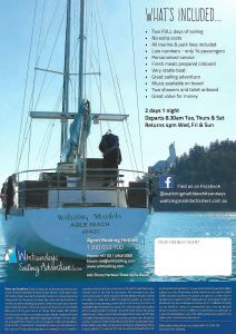 SV WHITEHAVEN ECO SAILING SAFARI Eco Sailing Adventures - SV Whitehaven 2 Days - 1 Nights This 17.5m ‘Beach Boat’ was designed to cruise tropical waters in style and comfort. With big open decks to sunbath on, plenty of on deck seating and a spacious aft deck boasting permanent shade, she is the ideal safari boat. With an emphasis on snorkelling, kayaking, sailing, eco guided island exploration an ...