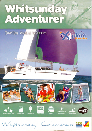 Step aboard the Adventurer, a 12 metre catamaran and enjoy sailing through the magnificent Whitsunday Islands. This 2 Day 2 Night journey will see you sailing, swimming and snorkelling the best that the Great Barrier Reef has to offer. Enjoy a live-aboard experience - the best way to introduce yourself to the beautiful Whitsundays both above and below the water! The skipper and enthusiastic crew w ...